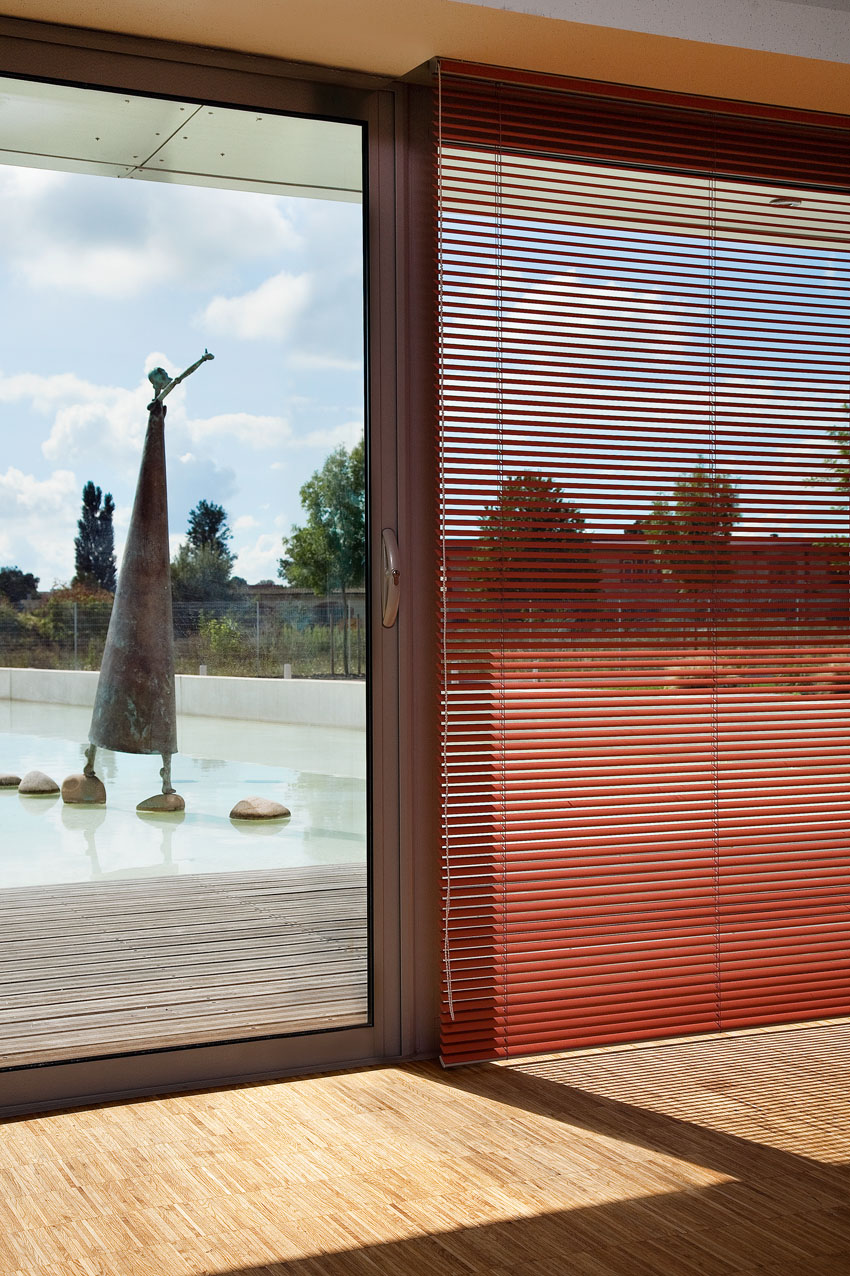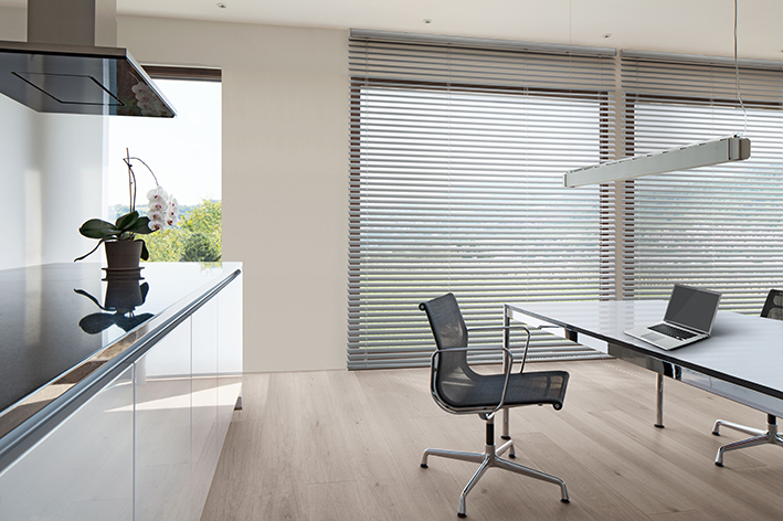 Als Klassiker im Sonnenschutzbereich haben Horizontal-Jalousien viele Eigenschaften: sie spenden Schatten, steuern den Lichteinfall, ermöglichen die Sicht nach draußen, gewähren Sichtschutz, sind filigran in der Technik und vermitteln eine sachlich, leichte Stimmung im Raum. Besonders bei Bildschirmarbeitsplätzen kann eine blendfreie Ausleuchtung geschaffen werden, die sich positiv auf Motivation und Leistung der Menschen auswirkt.